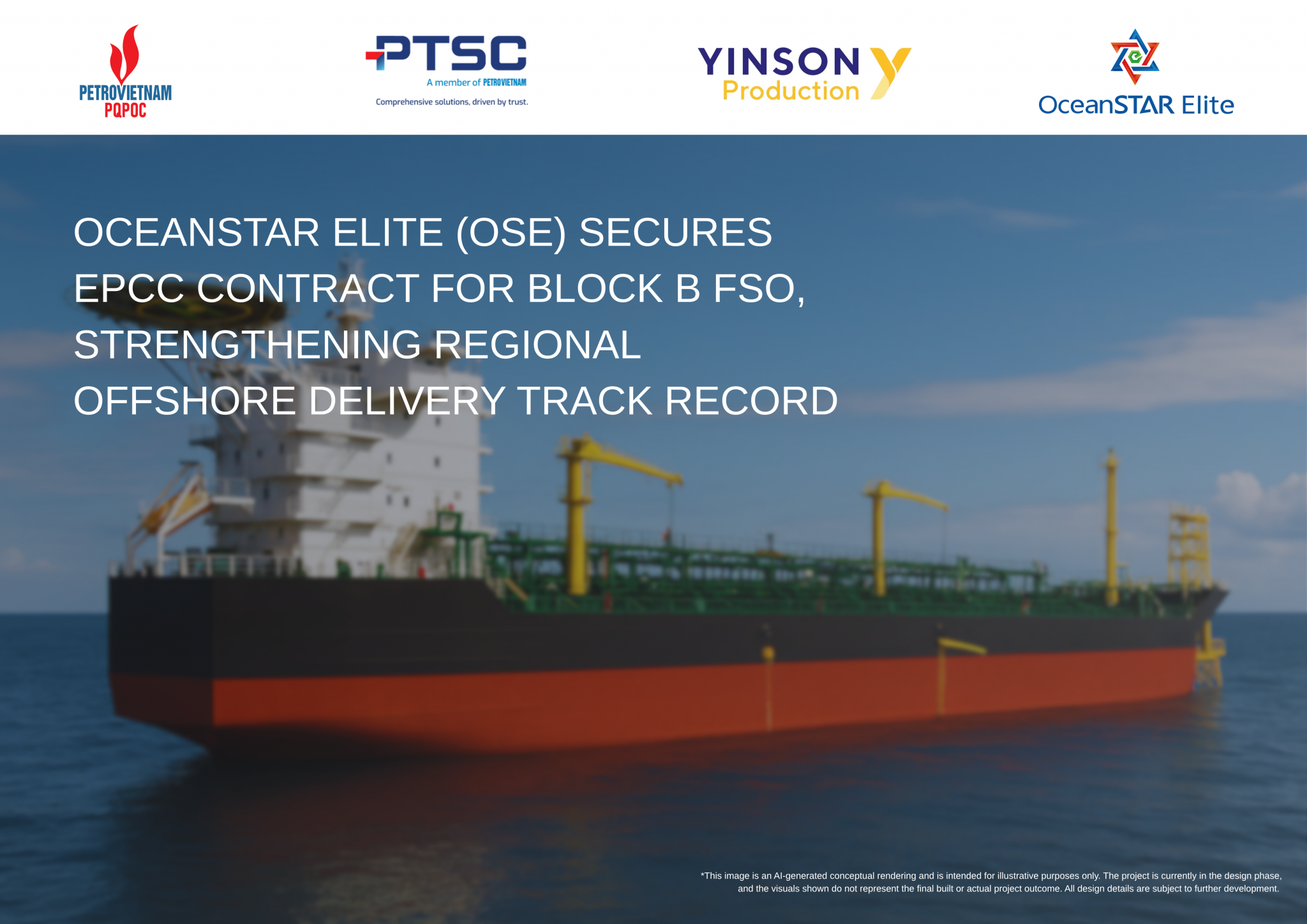 OceanSTAR Elite (OSE) is pleased to announce that it has been awarded the Engineering, Procurement, Construction, and Commissioning (EPCC) contract for the Block B Floating Storage and Offloading (FSO) unit offshore Vietnam. The FSO is part of a broader gas field development led by Branch of Vietnam National Industry – Energy Group -Phu Quoc Petroleum Operating Company (PQPOC), with the project executed by PTSC South East Asia Pte Ltd (PTSC SEA)—a joint venture between PetroVietnam Technical Services Corporation (PTSC, 51%) and Yinson Production Capital Pte Ltd (Yinson, 49%).